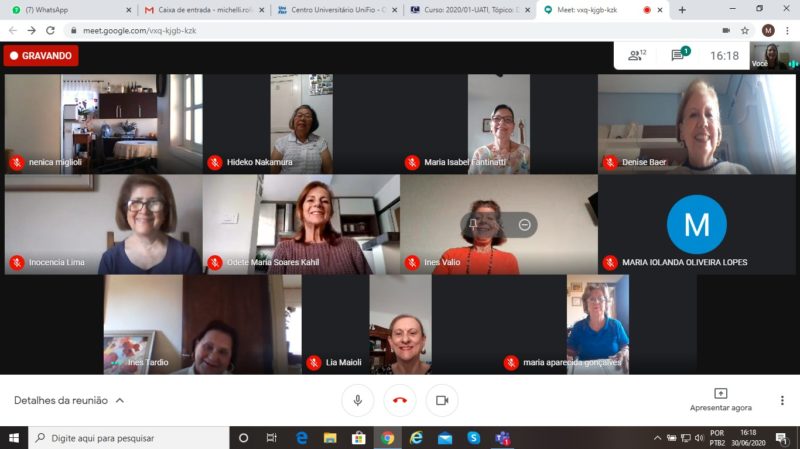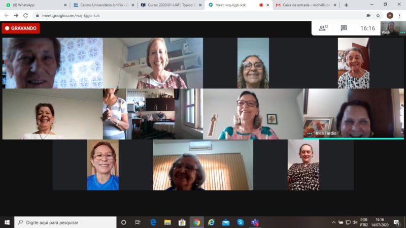 O novo formato de ensino, através de aulas remotas (online), em tempos de pandemia, também foi bem assimilado pelas alunas da Universidade Aberta à Terceira Idade do Centro Universitário UNIFIO. Superadas as dificuldades iniciais de adaptação às novas tecnologias, natural entre estudantes de todos os ciclos, as alunas da UATI estão participando e aproveitando bem as aulas e os conteúdos oferecidos pelos professores. O esforço e a dedicação de todos – coordenadora, professores e alunas, estão refletindo em bons resultados e contribuindo para amenizar os reflexos do distanciamento social.