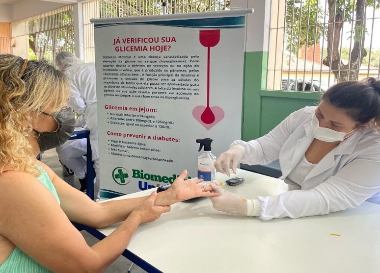 Na ocasião, os alunos ofereceram orientações sobre Hipertensão, Diabetes e a importância da Doação de Sangue. Além das orientações, também realizaram aferição da pressão arterial, testagem da glicemia capilar e a determinação sanguínea ABO e RH por punção capilar.