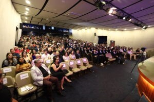 Pais, familiares e amigos dos formandos lotaram o Teatro Roque Quagliato, para participar das solenidades e comemorar a conquista dos formandos.
