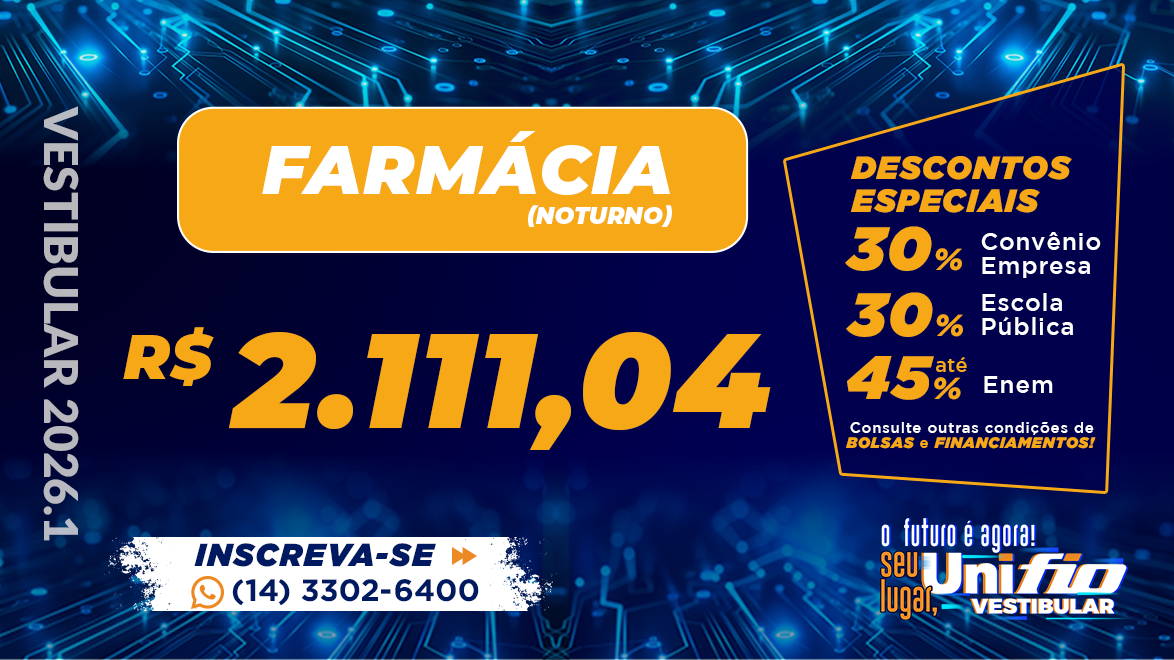 O aluno da Unifio, graduar-se-á Bacharel em Farmácia. Como bacharel, poderá desempenhar atividades na área de farmácia, análises clínicas e toxicológicas, enfrentar os desafios das modernas tecnologias no setor industrial de medicamentos, cosméticos, alimentos, saneantes, domissanitários e produtos químicos.