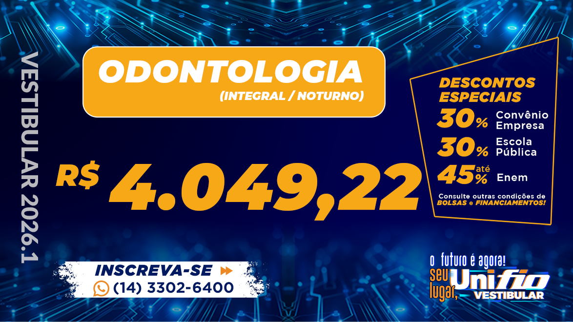 O caráter moderno, atualizado e multidisciplinar do curso de odontologia Unifio permite ao estudante o domínio da prática nas diversas áreas da odontologia formando profissionais capacitados para o mercado de trabalho. Com uma infraestrutura moderna e um corpo docente formado por mestres e doutores o curso proporciona uma sólida formação técnico-científica, humanista e ética, para que o aluno se torne integralmente habilitado a cuidar da saúde e da estética da boca.