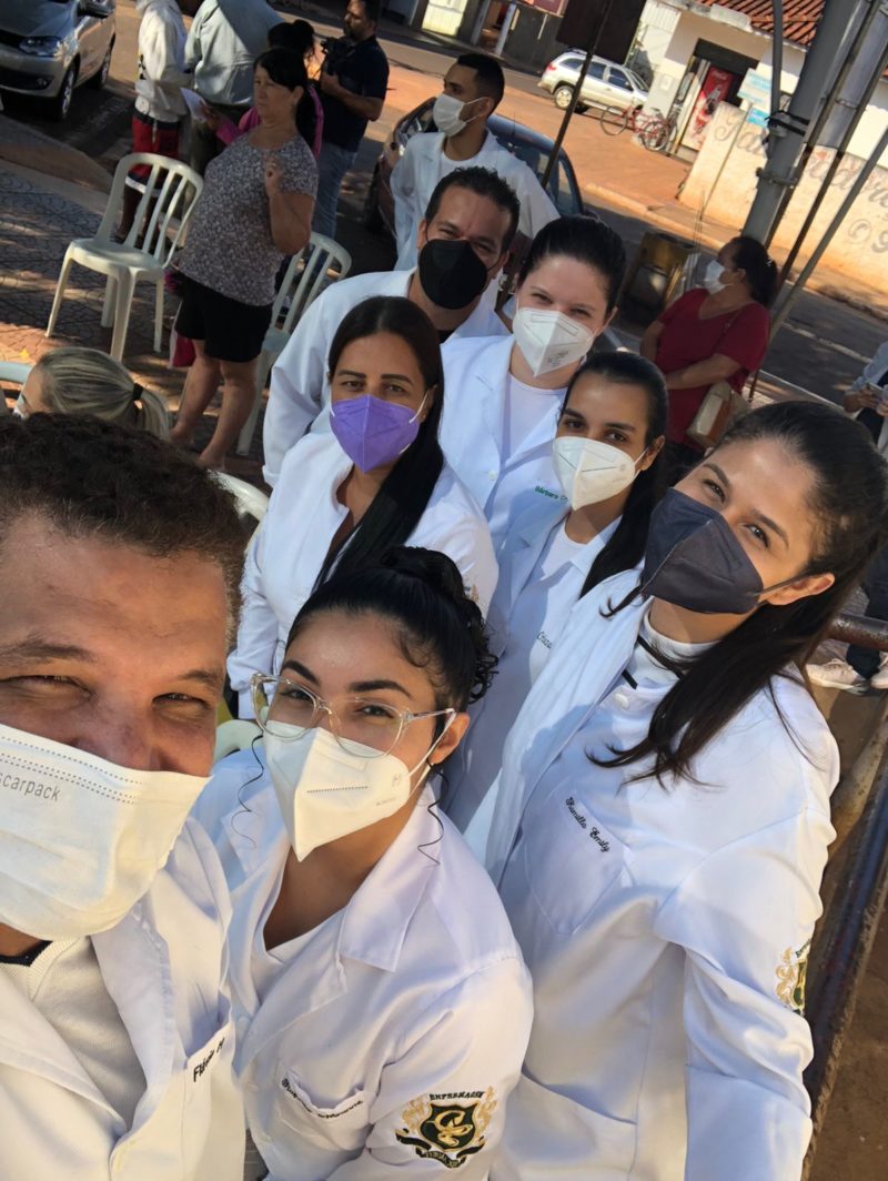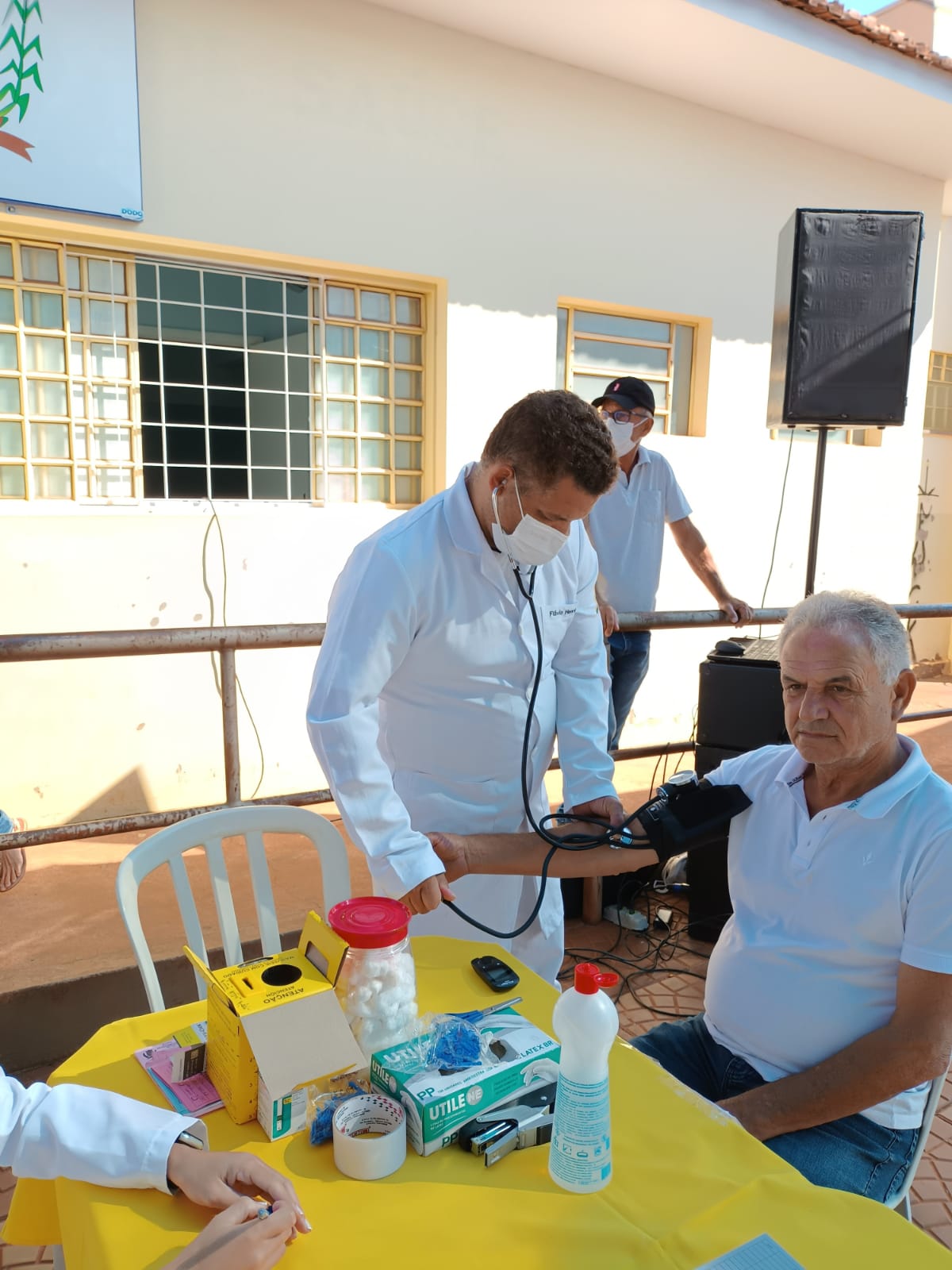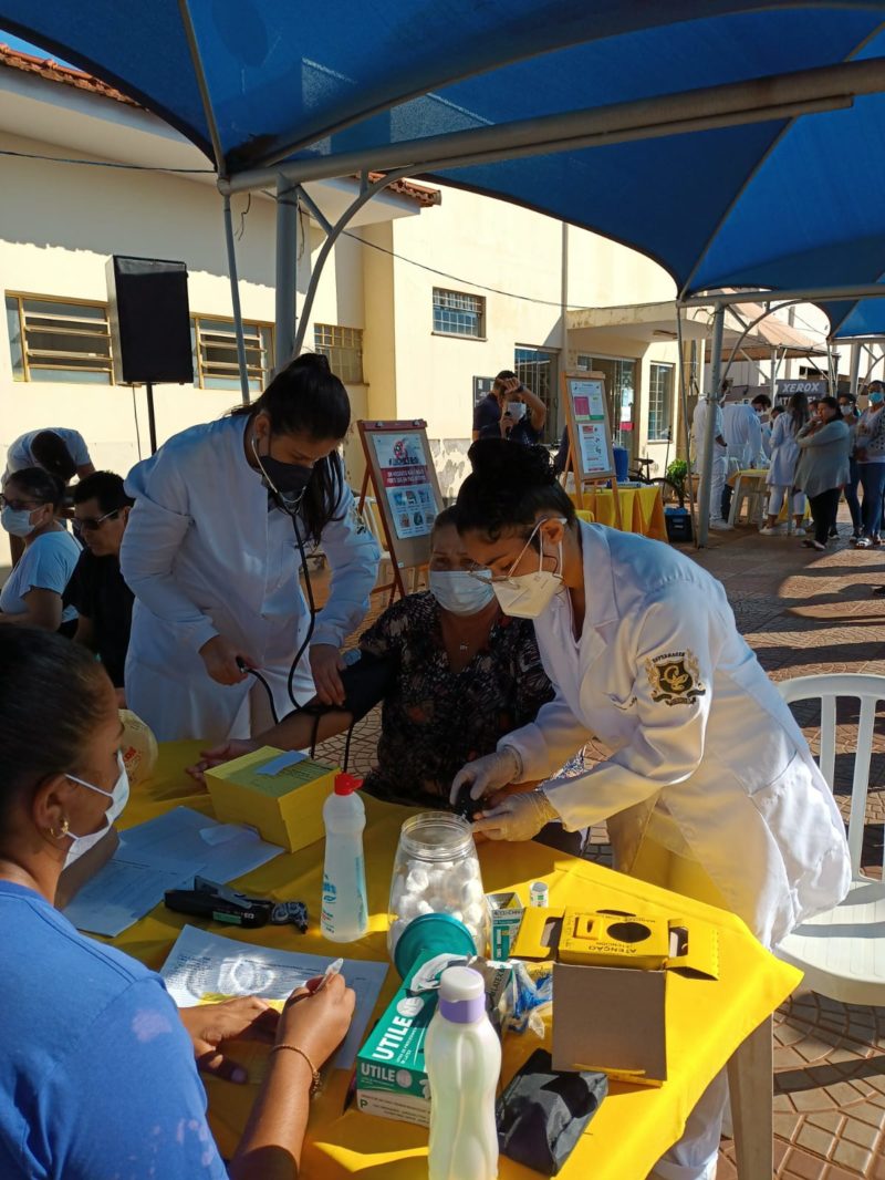 O coordenador do Curso, professor Juliano Rodrigues Coimbra, professores e alunos atenderam a comunidade com a aferição de pressão arterial, glicemia capilar e orientações em geral.