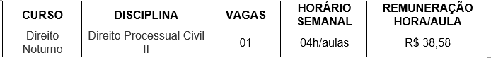 Parágrafo Primeiro: O presente Edital tem apenas validade para a contratação do docente na disciplina objeto deste certame;