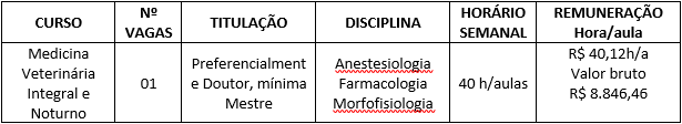 – Titulação preferencialmente de Doutor, mínima Mestre, na área de anestesiologia veterinária;