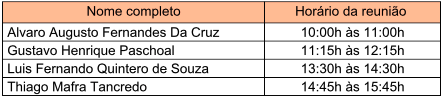 I – Convocar os candidatos classificados para se apresentarem no dia 31 de maio virtualmente, na sala de reuniões da plataforma google meet através do linke que será enviado ao email do candidato nos horários apresentados abaixo: