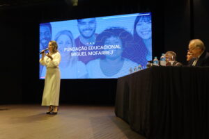 projetando a Fundação para o futuro. Brigadeiro ressaltou ainda que Roque conseguiu transferir para a filha Beatriz, o amor pela Fundação e seu maravilhoso legado e concluiu que a FEMM é gigante.