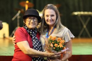 Ao final do espetáculo, a coordenadora Gerda Kewitz agradeceu a presença de todos e homenageou os gestores da FEMM, UNIFIO e CSA com flores.