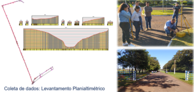 As atividades em desenvolvimento são: traçado da pista (projeto geométrico), projeto de pavimentação e, por fim, orçamento da obra. O período de duração do projeto é março a novembro de 2022.