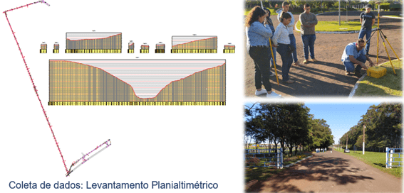As atividades práticas foram: contagem de veículos para determinação de fluxo e, assim, dimensionar o tamanho da pista e as camadas de pavimentação; levantamento topográfico planialtimétrico das pistas, para determinação da posição e relevo dos dois trechos em análise.