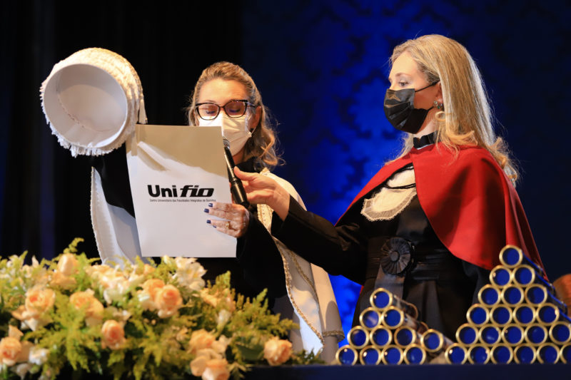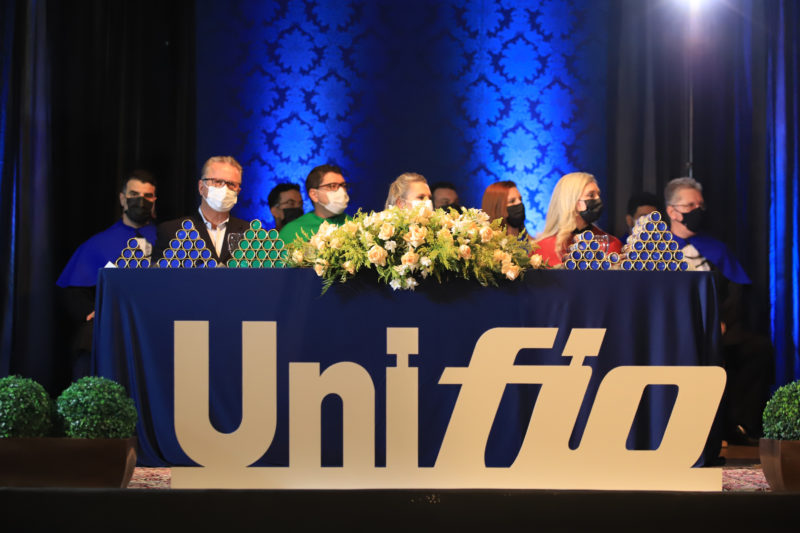 A reitora da UNIFIO Gláucia Hellen Librelato Gonçalves presidiu as duas solenidades, conferindo grau aos formandos que compartilharam a conquista com os pais e familiares. A mesa diretora foi integrada pelos coordenadores de Cursos, professores homenageados e demais membros do corpo docente e da comunidade acadêmica UNIFIO.